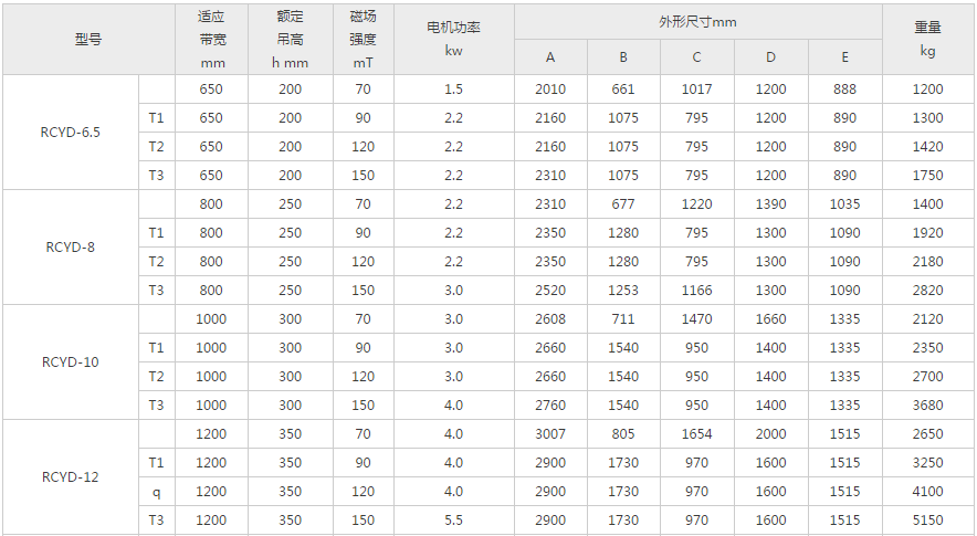 RCYD型自卸式国产91视频网站与RCYC系列型号等同,适用于各行业输送带输料除铁。可实现连续不断的吸弃铁。皮带具有自动纠偏功能,运行可靠、维护简单。其内部磁路采用完善的磁结构,保障整机在恶劣环境中无故障长期运行。拥有防爆型和铠装型。