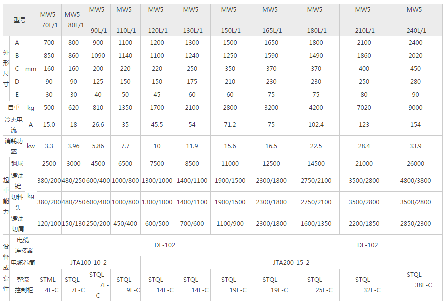 MW5型起重电磁铁采用全密封结构,防尘、防潮性能良好。励磁线圈经特殊工艺处理,绝缘材料耐热等级达到c级,提高了线圈的电气和机械性能,延长了使用寿命。安装、维护简便,运行可靠。适用于冶金、矿山、机械制造,交通运输等行业吊运钢铁等磁性物料。